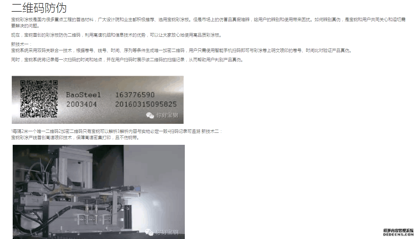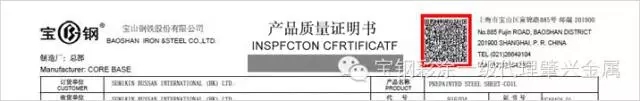 数字形(xing)式(shi)与(yu)纸质(zhi)形(xing)式(shi)的宝(bao)钢股(gu)份(fen)彩涂(tu)产品电(dian)子质(zhi)保书均带有二(er)维码,可以通过宝(bao)钢在线移动(dong)应用读(du)取并(bing)验证。