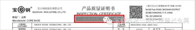 宝钢股份出具的彩图产品质保书均带有防伪光栅使用专用的光栅片可以查看到宝钢Logo,该Logo在质保书的复印件上会自动消失。