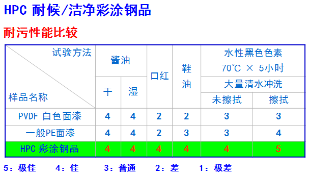 自清洁彩涂板(HPC)采用欧洲最新研发之特殊树脂涂料,再结合高耐蚀型PU底漆,除了具有自身洁净功能外,涂料亦具最佳耐候性,可使用于需抗尘与需高耐候性之环境,使得此种涂料系统,兼具抗尘与除污功(gong)能,并可(ke)维持最高(gao)年(nian)限之耐久性(xing)。
