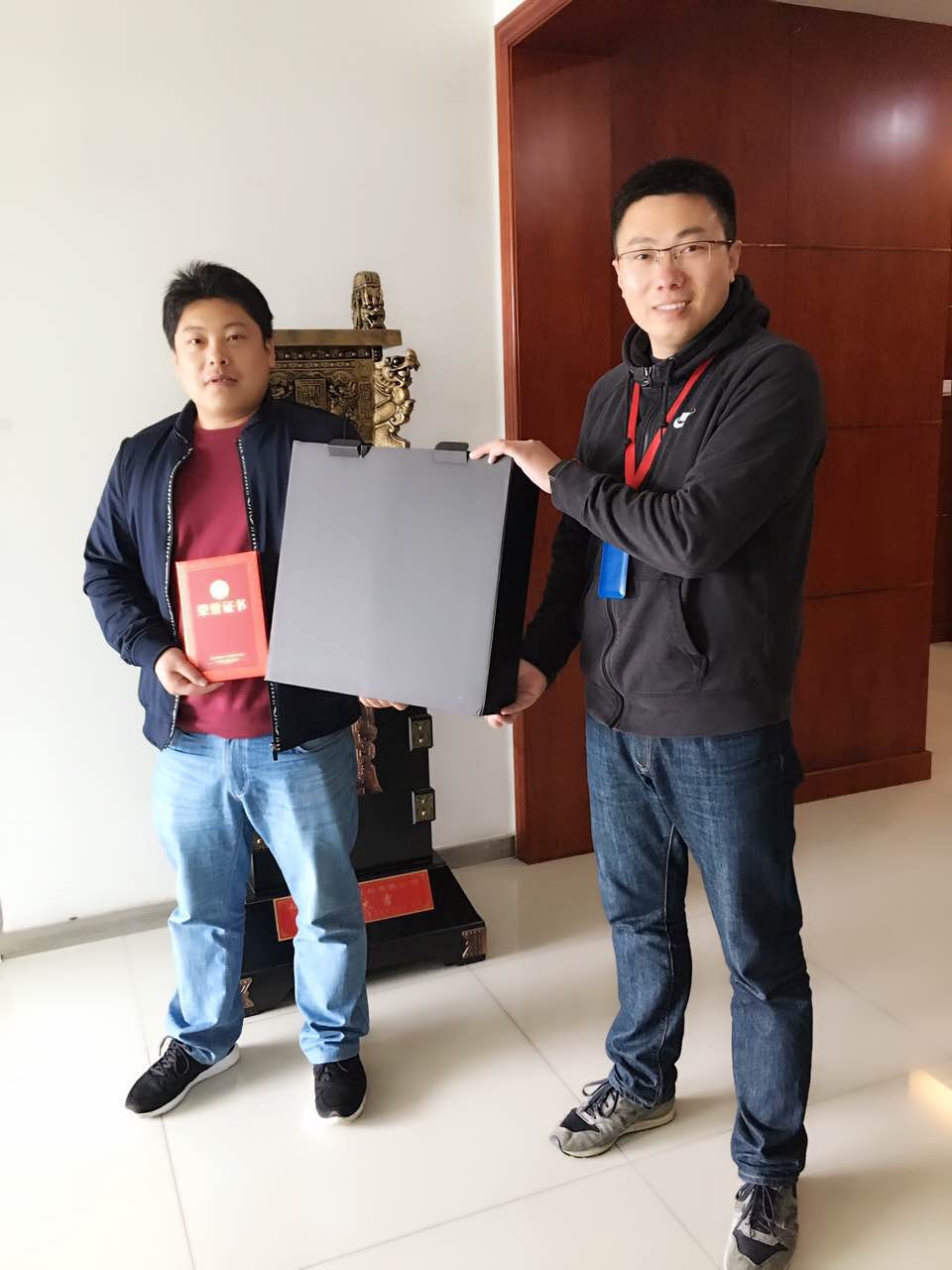根据公司2017年度业绩考核制度和评估原则,上海公司销售部冯亚飞主管以优异的成绩获得本年度第一季度销售之星称号,刘总代表公司高层向冯主管授予荣誉证书,并奖励蔻驰(COACH) 真皮公文包一个,勉励冯主管以身作则,继续攀登,以客户为中心,践行公司“诚实、正直、专业、担当”的工作理念,在未来的工作中再创佳绩!同时希望其他同事,以冯亚飞主管为励志榜样,自我完善,抢学恶补,在个人管理和业务开拓方面强化执行力,圆满完成业绩目标。